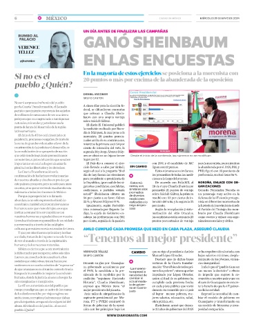 de que avanzamos en el rumbo correcto tras la el PAN, la candidata a la pre- • La morenis- mero los pobres”, mismo que fue sus manos la decisión” a efecto