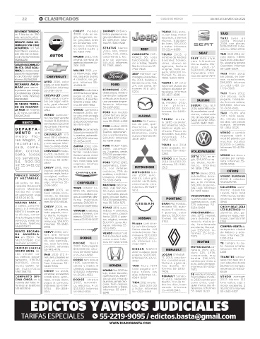 22 B! CLASIFICADOS CIUDAD DE MÉXICO JUEVES 30 DE MAYO DE 2024