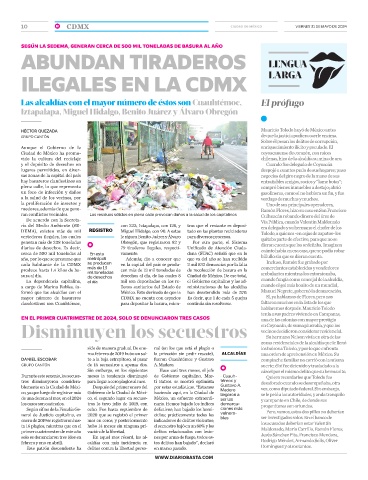 ran conflictos vecinales. • Los residuos sólidos en plena calle provocan daños a la salud de los capitalinos Culhuacán robando dinero del área de