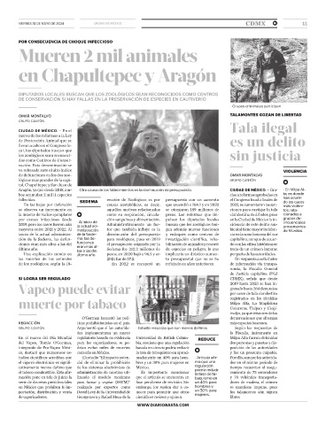 fallecidas. SEDEMA rección de Zoológicos es por presupuesto con un aumento el Congreso local a finales de han ocurri-