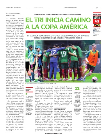 CARLOS HORTA MARTÍNEZ ENFRENTA ESTE VIERNES A BOLIVIA EN EL SOLDIER FIELD DE CHICAGO AMISTOSO