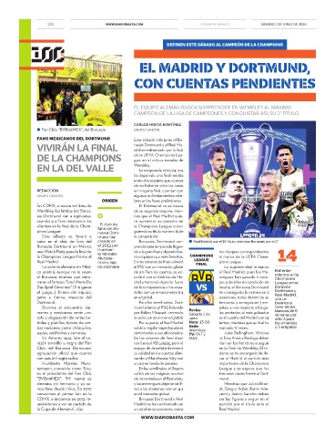 cabo en el club de fans del creado en Borussia Dortmund sor- ● Real Madrid, por el 15° título, mientras Borussia, por el 2°