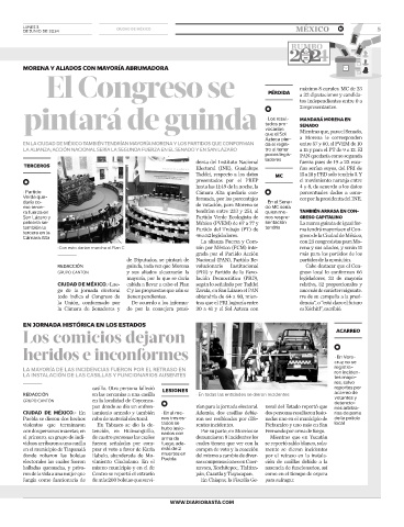EN LA CIUDAD DE MÉXICO TAMBIÉN TENDRÍAN MAYORÍA MORENA Y LOS PARTIDOS QUE CONFORMAN da el regis- entre 57 y 60, al PVEM de 10