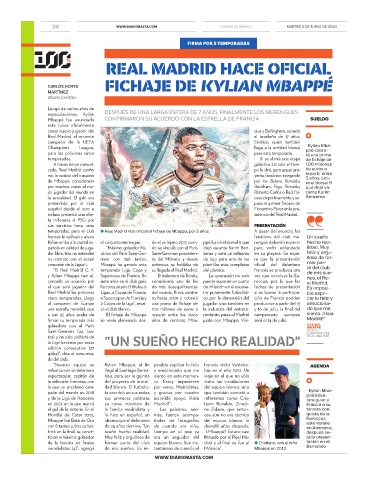 temporadas, pero el club ● Real Madrid hizo oficial el fichaje de Mbappé, por 5 años A pesar del anuncio, los