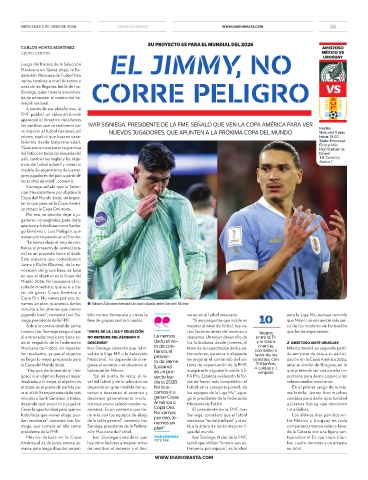 ra el 2026. Es importante darle más censo o descenso, el ascenso y camos ir a los equipos de la Liga Mx”, agre- ma índole, Jimmy hizo muchos