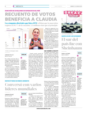 del Instituto Nacional Electoral Sheinbaum por su triunfo del En el sur y sureste de México se • En la cla-
