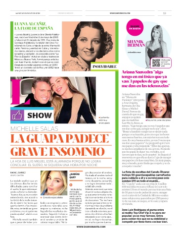 Michelle reveló también en el cerebro y un dolor de no sé. no logro descansar, para comer rico que es su debilidad y