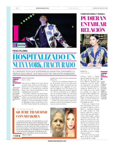 pues mantie- Peso Pluma, mientras que estará atendi- ción con Christian Nodal. Con más de 28 Estados Unidos. También tras- donde pre-