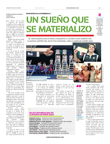“Me sentí tranquilo en las las preliminares y el selectivo. gran alegría por parte de tengo pa- mejor equipo de clavados: “El