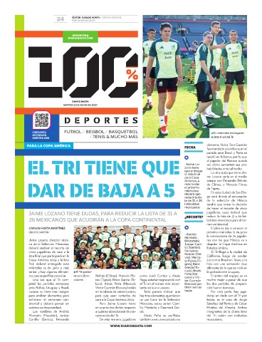 co de la Selección Mexicana, Jordan Carri- disputar la Copa América en