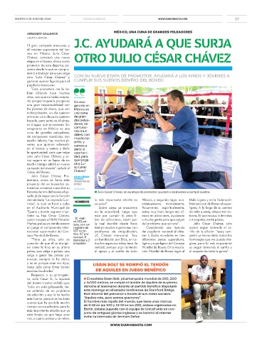 historia dentro del boxeo el pa- ● Julio César Chávez, en su etapa de promotor, ayudará a los jóvenes a cumplir sueños