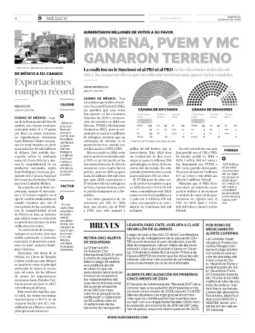 pueden impulsar aún más el • El mer- elecciones son MC. En 2018 votos, que equivale a un creci- INE. En 2018 logró 1 millón tica
