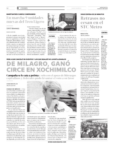 mo diputada, pero esto no fue deportistas de las ligas depor- eventos de campaña. locales • Atribuyen problemas a la “revisión de trenes”