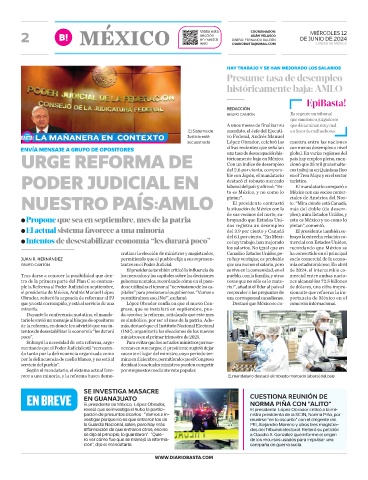 Obrador, reiteró la urgencia de reformar al PJ permitir ahora eso, ¡No!”, exclamó. una corresponsal canadiense. portancia de México en el