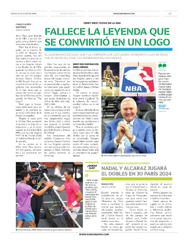 NBA, Jerry West prome- con una estatua como ho- dor, pero cuanto más lo co-
