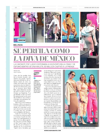 este jueves Belinda dio una ver- • Belinda com- para preguntarle acerca de la