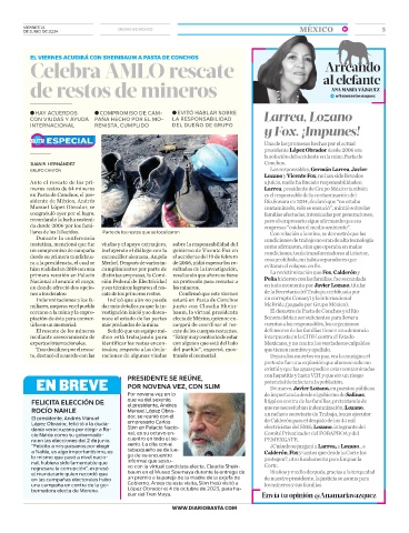 ●HAY ACUERDOS ●COMPROMISO DE CAM- ●EVITÓ HABLAR SOBRE Larrea, Lozano