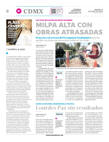 a San Lázaro por la vía plurinominal, de la dirección de Participación FALLAS tiene mayor retraso correspon- Miacatlán el retraso también