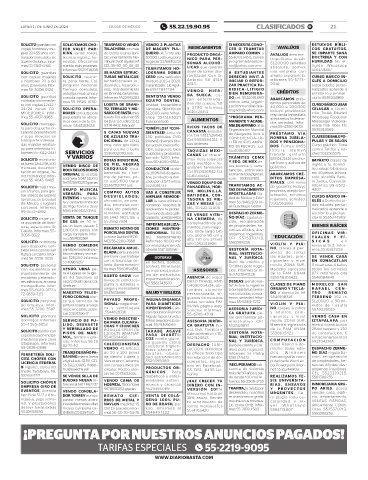 LUNES 17 DE JUNIO DE 2024 CIUDAD DE MÉXICO 55.22.19.90.95 CLASIFICADOS B! 21