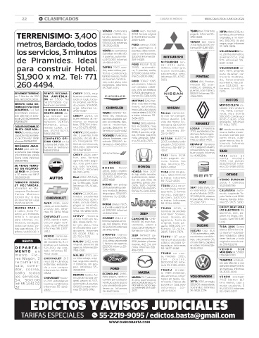 22 B! CLASIFICADOS CIUDAD DE MÉXICO MIÉRCOLES 19 DE JUNIO DE 2024