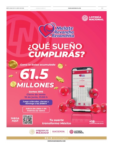MIÉRCOLES 19 DE JUNIO DE 2024 CIUDAD DE MÉXICO WWW.DIARIOBASTA.COM 27 MARTES 7 DE MARZO DE 2023 WWW.DIARIOBASTA.COM