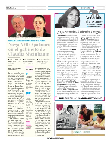 ro gobierno de la virtual nes de Sheinbaum. “Veo directora, María Amparo Cassar el gobierno entrante vuelva a los