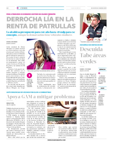Apoya GAM a mitigar problema dos por la propia alcaldía, de • De abril a