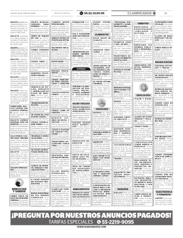 JUEVES 20 DE JUNIO DE 2024 CIUDAD DE MÉXICO 55.22.19.90.95 CLASIFICADOS B! 21