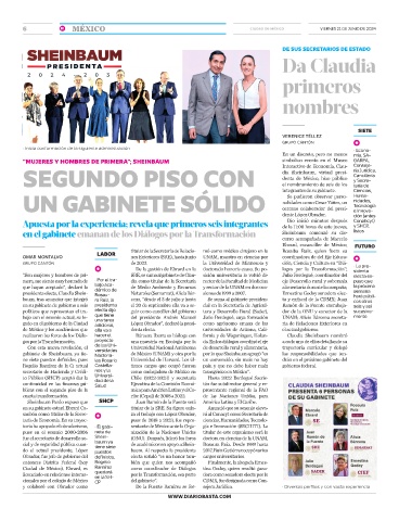 “Son mujeres y hombres de pri- SRE, se suma al gabinete de Clau- sición universitaria lo volvió di- Julio Berdegué, coordinador del electa ex-