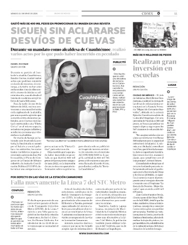 tramo, mien- debido a una falla que se re- cio en su totalidad en la Línea lidad de la Ciudad de México estructurales. También se insta-