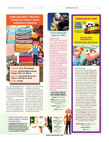 a conocer los diversos pro- además, no sólo puedes lle- HORARIO: 12:00 A 20:00 gometraje, gracias a todas las