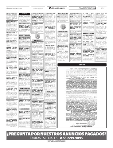 SÁBADO 22 DE JUNIO DE 2024 CIUDAD DE MÉXICO 55.22.19.90.95 CLASIFICADOS B! 23