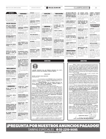 MARTES 25 DE JUNIO DE 2024 CIUDAD DE MÉXICO 55.22.19.90.95 CLASIFICADOS B! 21