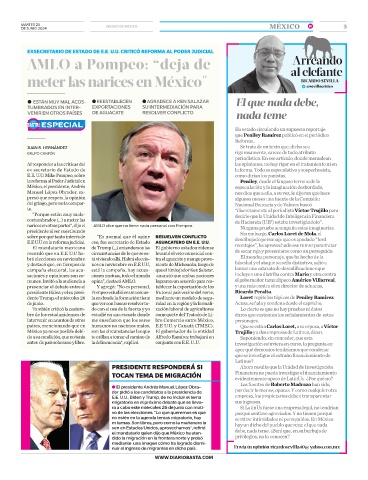 narices en otras partes", dijo el • AMLO dice que no tiene nada personal con Pompeo. Ninguna prueba acompaña estas imaginerías.