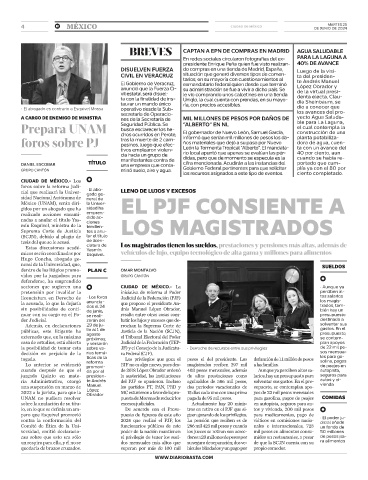 contra la conformación del 2024 que realizó el PJF, los La pensión que reciben es de viáticos en comisiones nacio- • El poder ju-