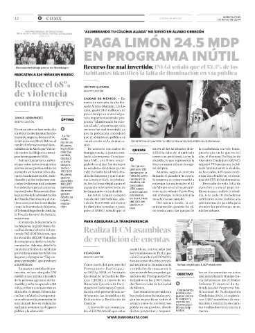 sultados de la Alerta por Violen- Ingrid Gó- De acuerdo con datos de QUEJAS 53.3% de los habitantes iden- la ciudadanía en este tema,