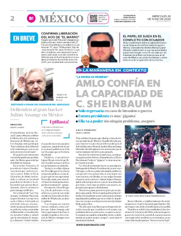 fundador de WikiLeaks, Ju- tual presidenta de México, Claudia Sheinbaum,