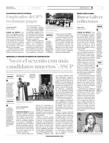 MUERTES • Presentó datos en conferencia casos significativos de violen- viados a Palacio Nacional son