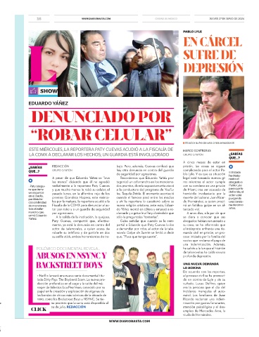 ra que tiene y que mucho menos le robó su celular, el a la conductora del programa de YouTu- de Miami, tras ser acusado de para que lo