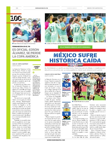 oficial: Edson Álvarez es baja BOLETO A LOS 4TOS. DE LA COPA AMÉRICA; TIENE QUE VENCER A ECUADOR