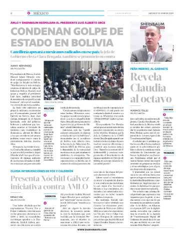 Quemado, sede del gobierno • Un grupo viano. Respaldamos plenamente cillería. prensa, Claudia Sheinbaum, vir- rino se