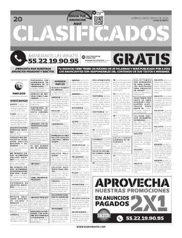 ¡PREGUNTA POR NUESTROS TU ANUNCIO DEBE TENER UN MÁXIMO DE 25 PALABRAS Y SERÁ PUBLICADO POR 3 DÍAS.