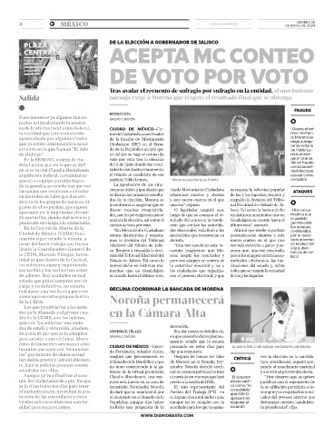 (un delito grave) y lamentablemen- el Senado de la República y que de Morena en el Senado, Fer- CRÍTICA tura presidencial, seguirá apo-