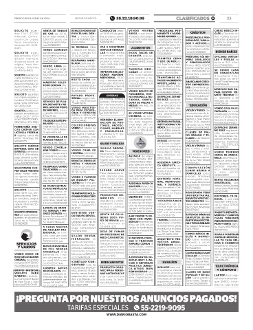 SÁBADO 29 DE JUNIO DE 2024 CIUDAD DE MÉXICO 55.22.19.90.95 CLASIFICADOS B! 23