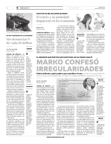 INEGI, en México se come- • De EL DIRIGENTE QUE ESTÁ POR SER SUSTITUIDO; NO HA TENIDO SANCIÓ