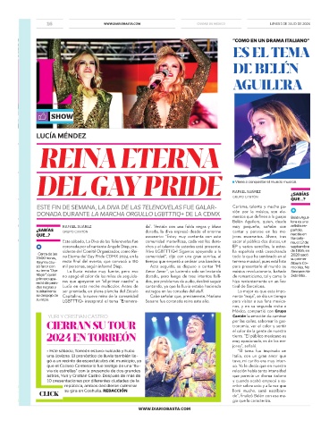 su ropa. LGBTTTIQ+ interpretó el tema “Enamora- Seoane fue coronada reina este año. para visitar a sus fans mexica-