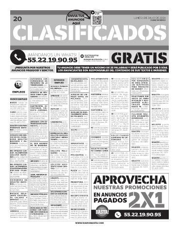 ¡PREGUNTA POR NUESTROS TU ANUNCIO DEBE TENER UN MÁXIMO DE 25 PALABRAS Y SERÁ PUBLICADO POR 3 DÍAS.