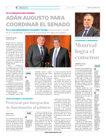 Augusto López", quien presi- só Ricardo Monreal. justicia le corresponde coor- dor de la bancada en San Lázaro. agríco-