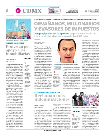 inmobiliarios en la CDXM no GRUPO CANTÓN Ello, aunque el Gobierno ca- • Se movilizan porque dicen que no los apoyan