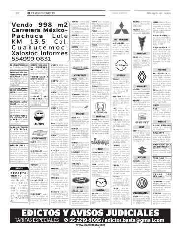 22 B! CLASIFICADOS CIUDAD DE MÉXICO MARTES 2 DE JULIO DE 2024